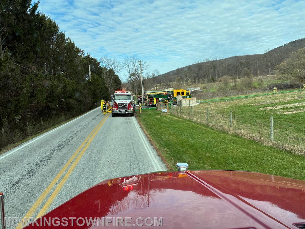 | Squad 33 (with 5) as the RIT and Tanker 33 responded Sunday morning to a reported Barn Fire in Franklin Twp, York County. The Squad was stood down as RIT and sent the crew forward to assist. Tanker 33 staged at the ready to hook into the siamese, if needed. Tanker 33 was released after not being used, Squad 33 was placed available once the crew completed tasks. |