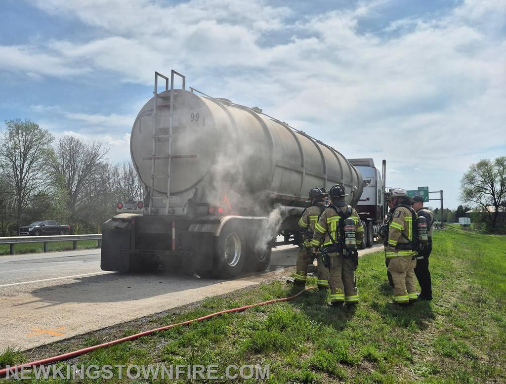 Engine, Tanker, Traffic, and Chief 133 responded at 14:50 to a reported truck brakes fire on I81 SB MM 52 Wednesday afternoon. Chief 7 was advised that an officer from Carlisle Police was on scene, advising one engine was needed. E33 arrived and pulled the booster line to provide a limited amount of water to cool the area. T33 took a blocking position. Traffic 33 staged. Crews remained on scene a short time before clearing the scene.